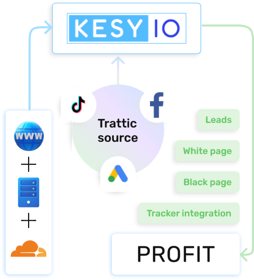 Kesyio имеет прямые интеграции с популярным средствами фильтрации трафика. Просто внесите api-ключ и вставляйте кло на нужный домен в один клик. Список интеграций постоянно расширяется.